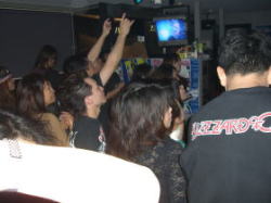 そのJUNさんと早めに合流して時間まではハードロックカフェにて雑談・・・。ジューダスの新譜はどうだろう?とか、メイデンはどうだとか、メタル話やHPのことなど熱く語り合う。しかし、早くも生の大ジョッキ3杯を流し込むJUNさんにびびる・・・。HRCのおね〜ちゃんをイベントに誘って撃沈しつつ・・・(-_-;)・・店を出る2人。そして会場に向かう途中コンビニで買った「リポビタンD」3本を一気に流し込むJUNさんに更にびびる(笑)・・この人本気や・・・