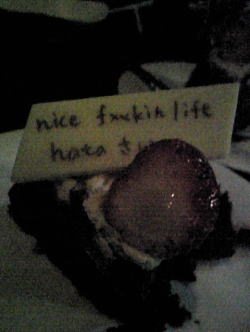 そしてジャーマネさんが用意してくれたBGM・・アンドリューW.Kの軽快なリズムに乗ってみんなでハッピーバ〜スデイ〜〜!!よしっ掴みはOK〜!!余談ですがケーキ買った時、お店の方が「プレートにお好きなメッセージ入れてください」とおっしゃいました。リクエストしたメッセージ・・・「nice